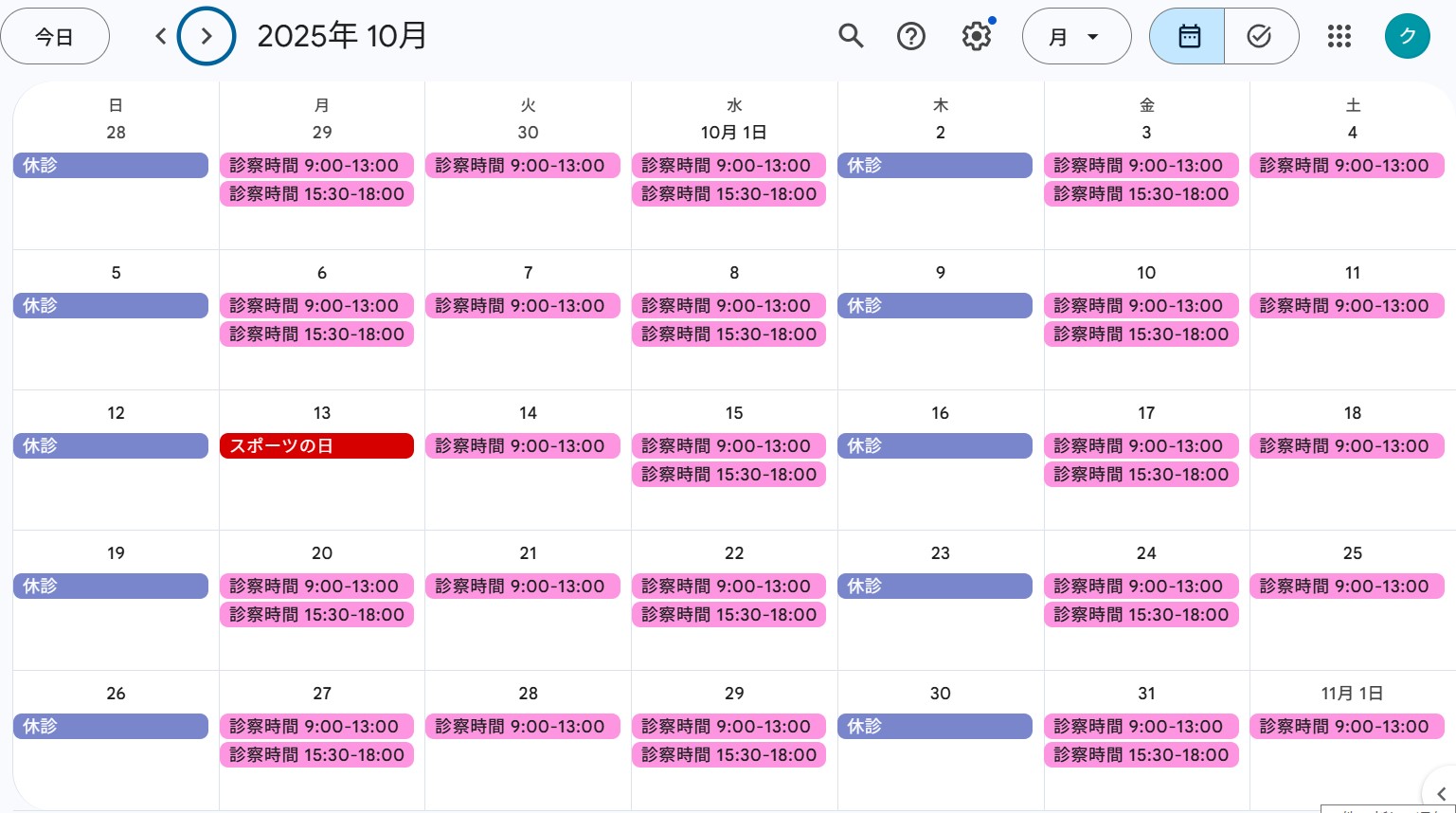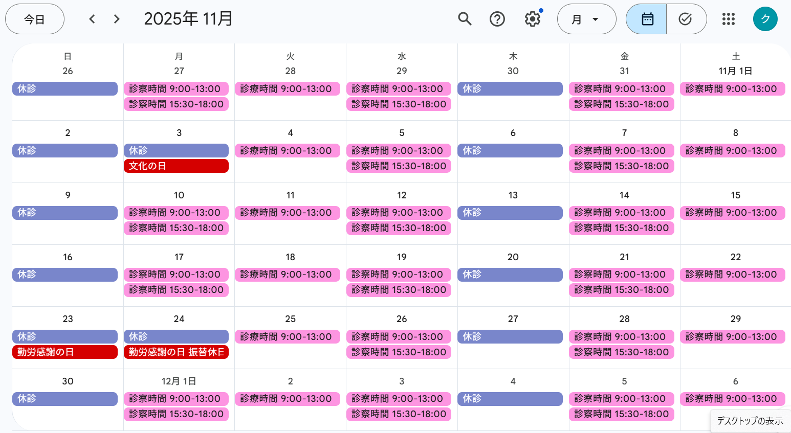 ◆診察カレンダー◆(クリックすると大きく表示されます)