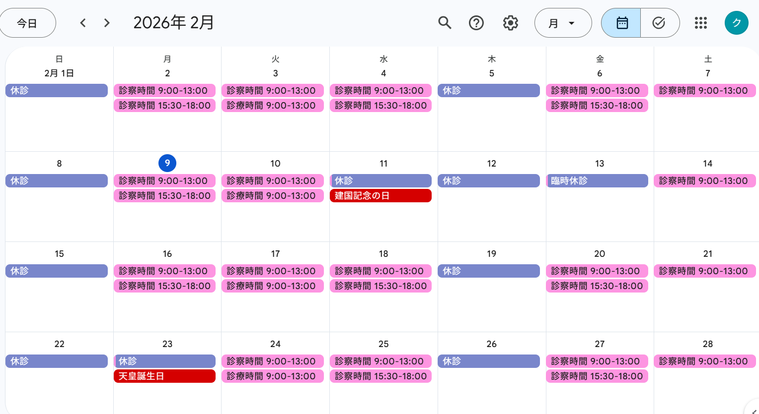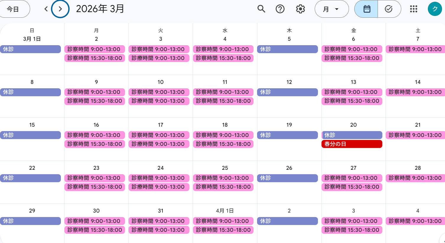 ◆診察カレンダー◆(クリックすると大きく表示されます)
