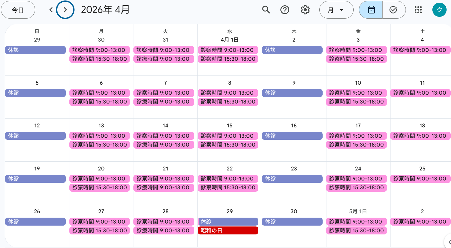 ◆診察カレンダー◆(クリックすると大きく表示されます)